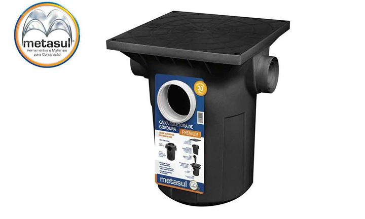 CAIXA COLETORA DE GORDURA GRANDE METASUL PREMIUM PRETO 41X41X48CM