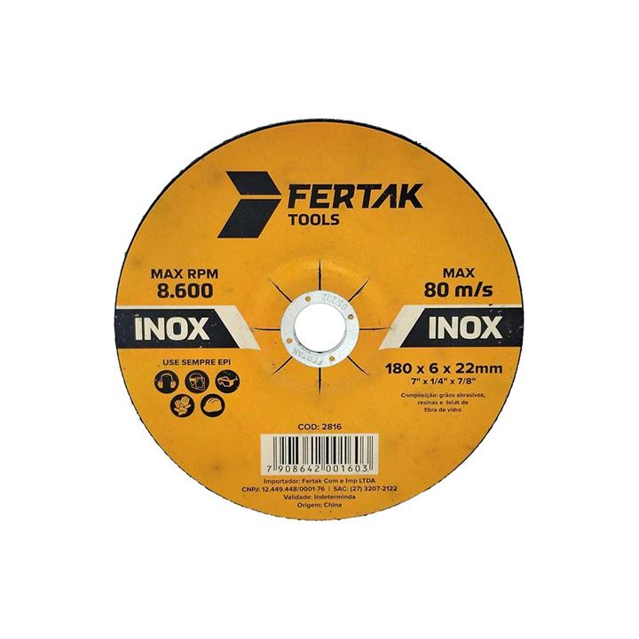 DISCO DE DESBASTE FERTAK INOX 7X1/4X7/8