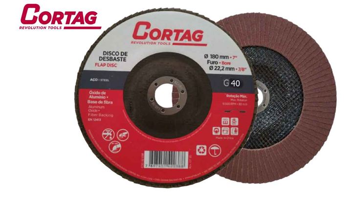 DISCO FLAP CORTAG ÓXIDO DE ALUMÍNIO 4.1/2X7/8 -115MM X 22,2 GRÃO 40