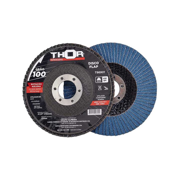DISCO FLAP THOR 4.1/2X7/8-115MM GRÃO 100