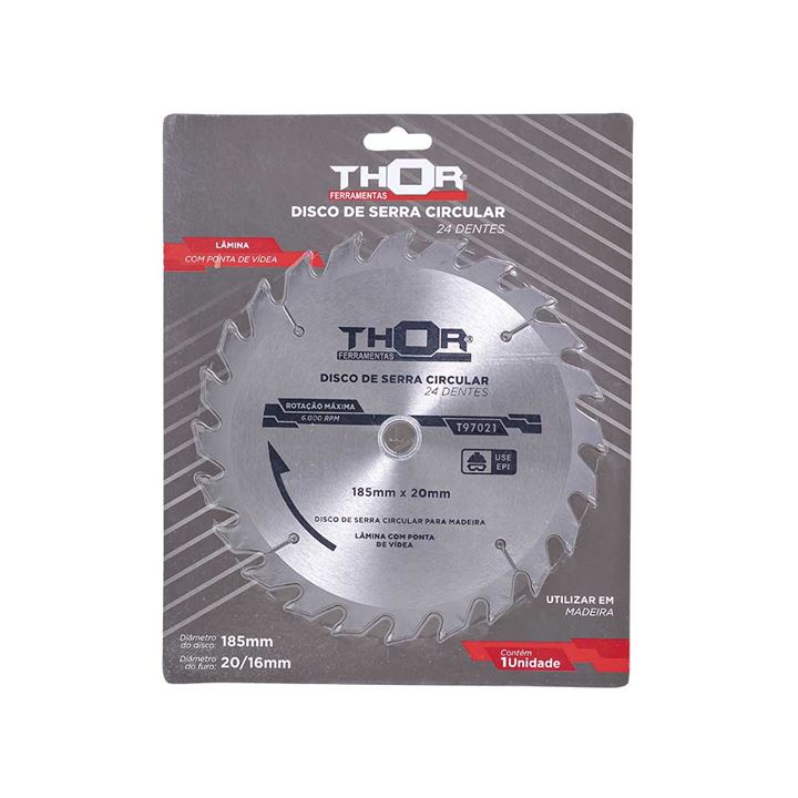 DISCO PARA MADEIRA CIRCULAR THOR 7.1/4 185MM X 20MM 24 DENTES