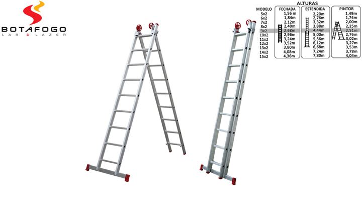 ESCADA EXTENSIVA 3 EM 1 EM ALUMÍNIO BOTAFOGO 2 X 9 DEGRAUS