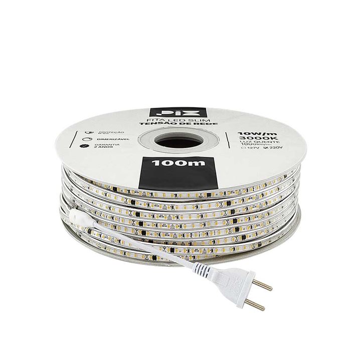 FITA LED SLIM TENSÃO DE REDE 10W 220V 3000K 100MTS