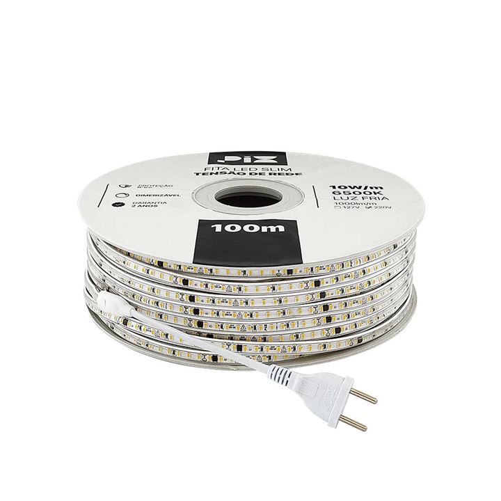 FITA LED SLIM TENSÃO DE REDE 10W 220V 6500K 100MTS