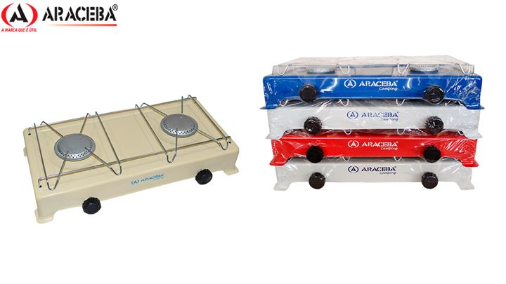 FOGÃO CAMPING ARACEBA DE BAIXA PRESSÃO 2 BOCAS HAVANA