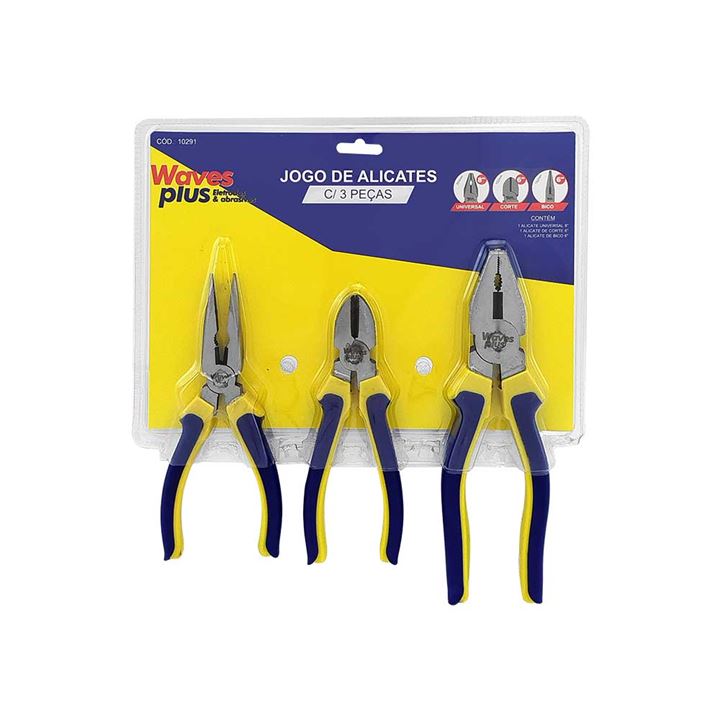 JOGO DE ALICATES UNIVERSAL/BICO/CORTE WAVES PLUS C0M 3 PECAS