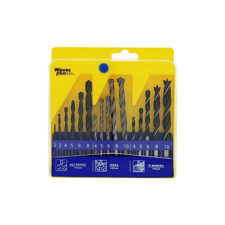 JOGO DE BROCAS AÇO, WIDEA, MADEIRA 16 PEÇAS WAVES PLUS