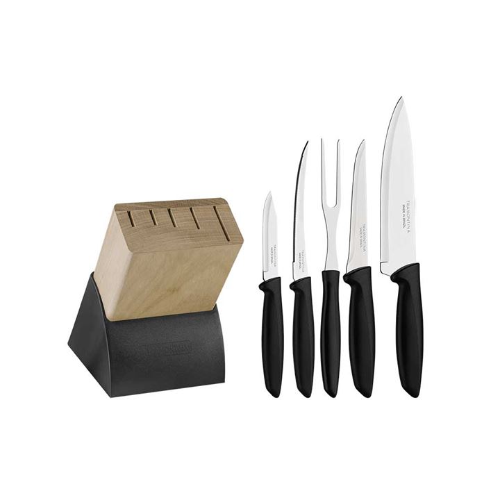 JOGO DE FACAS TRAMONTINA PLENUS COM LÂMINAS EM AÇO INOX E CABOS DE POLIPROPILENO PRETO 6 PEÇAS