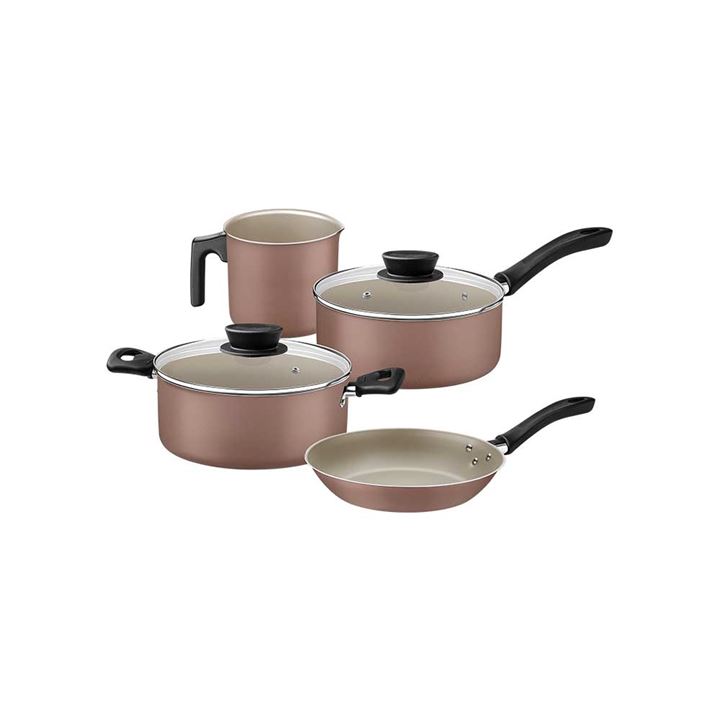 JOGO DE PANELAS TRAMONTINA LINZ EM ALUMINIO COM REVESTIMENTO INTERNO E EXTERNO EM ANTIADERENTE STARFLON MAX MARROM 04 PEÇAS