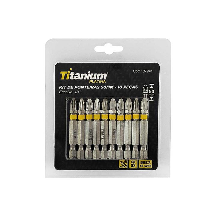 JOGO DE PONTEIRAS S2 1/4 50MM PH1X10 TITANIUM 10 PEÇAS