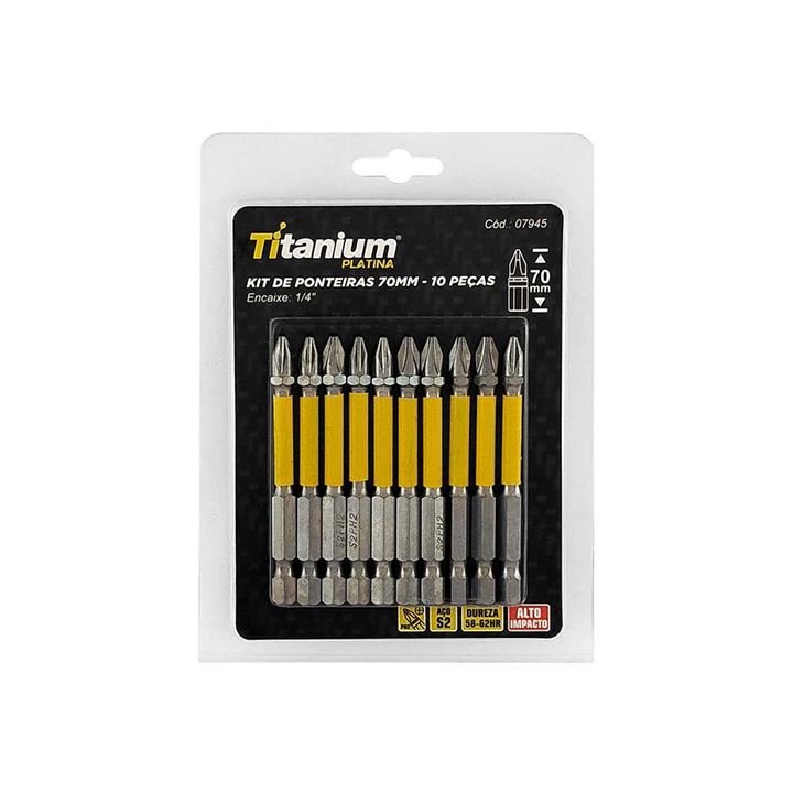 JOGO DE PONTEIRAS S2 1/4 70MM PH2X10 IMPACTO TITANIUM 10 PEÇAS