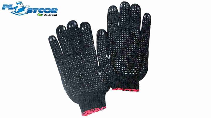 LUVA TRICOTADA PLASTCOR PIGMENTADA 3 FIOS PRETA