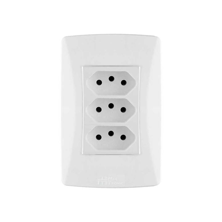 MEC-TRONIC LINHA PETRA BR 3 TOMADAS MONOBLOCO 2P+T 10A/250VCA COM PLACA PETRA