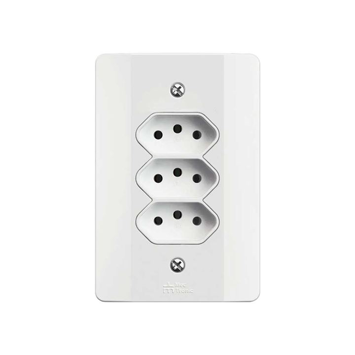 MEC-TRONIC LINHA SOFT BRANCO 3 TOMADA 2P+T 10A/250VCA C/PLACA MILLENIUN