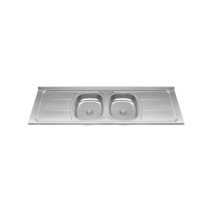PIA DE INOX GHELPLUS BALI COM ESCORREDOR CONCRETADA 2 CUBAS Nº04 1.60M 56CM AÇO 430 SEM VÁLVULA