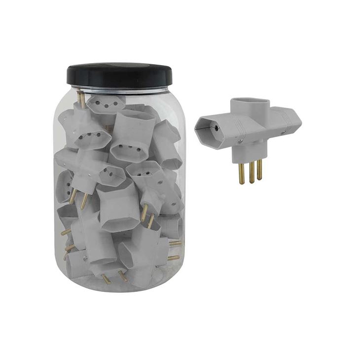 PINO PLUZIE BENJAMIM 3 SAIDA 2P+T 10A CINZA POTE COM 20 UNIDADE