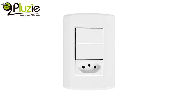 PLUZIE LINHA PLUZI BRANCA 2 INTERRUPTORES PARALELOS + TOMADA 2P+T 10A