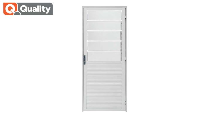 PORTA DE ALUMÍNIO BRANCA COM BASCULANTE LADO DIREITO HOME VIDRO LISO L80 X A2.10 QUALITY