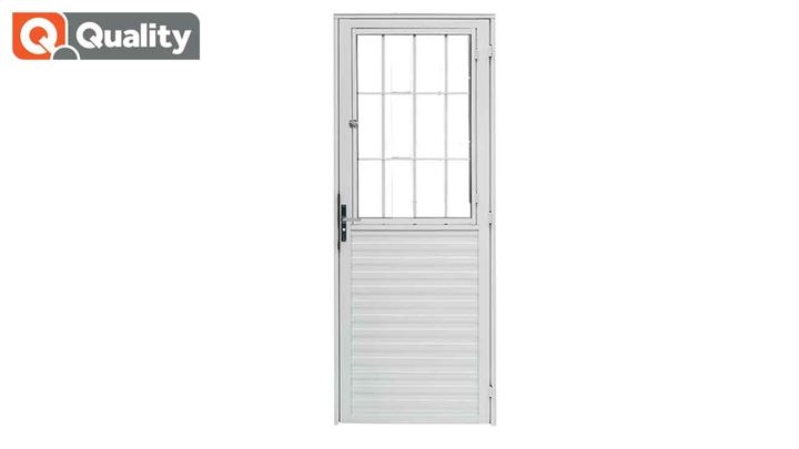 PORTA DE ALUMÍNIO BRANCA QUALITY POSTIGO HOME LADO DIREITO VIDRO CANELADO 80X2.10