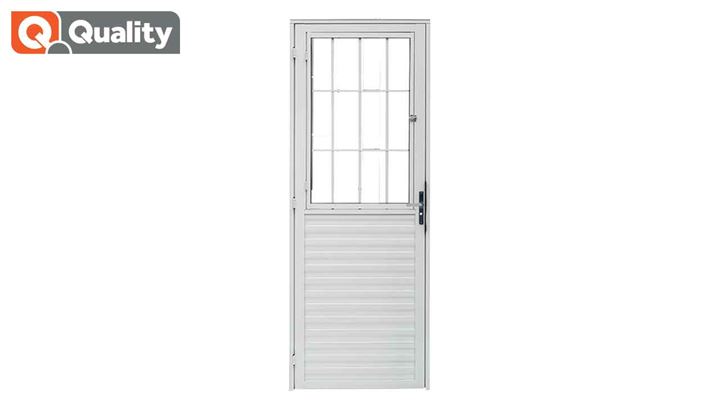 PORTA DE ALUMÍNIO BRANCA QUALITY POSTIGO HOME LADO ESQUERDO VIDRO LISO 80X2.10