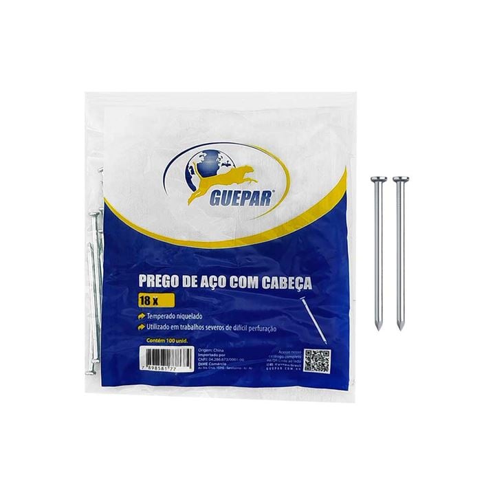 PREGO GUEPAR ACO TEMPERADO NIQUELADO 18X30 COM 100 PEÇAS