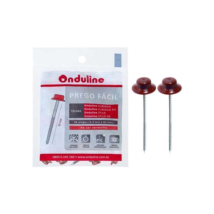 PREGO ONDULINE FACIL VERMELHO / MARROM PACOTE COM 18 UNIDADE