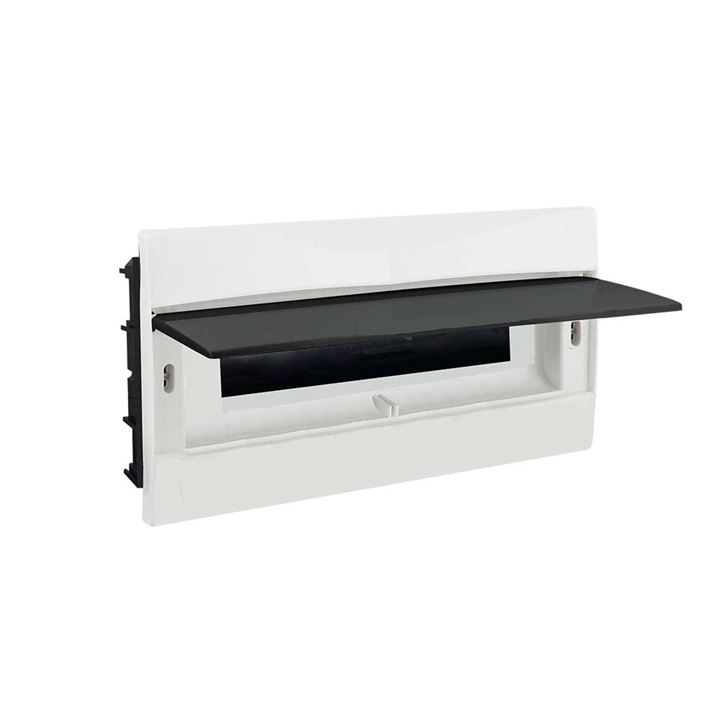 QUADRO DE DISTRIBUIÇÃO DE EMBUTIR COMPOLUX BRANCO E VISOR PRETO 12/18 DISJUNTOR DIN