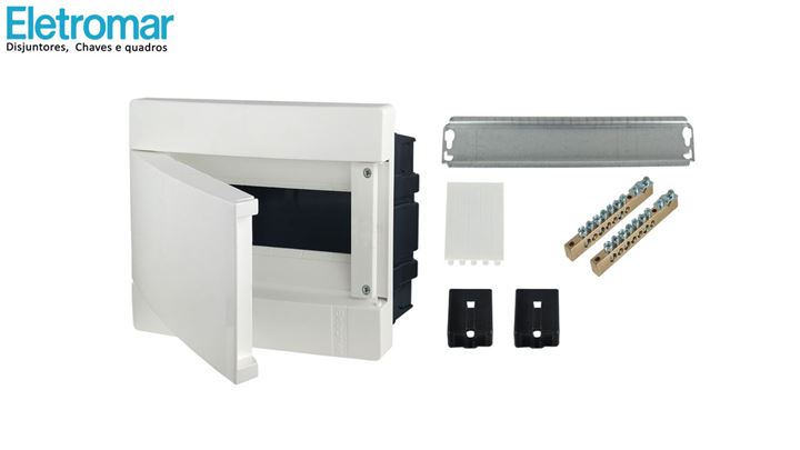 QUADRO DE DISTRIBUIÇÃO DE EMBUTIR ELETROMAR BRANCO P/08 DIN OU 12 NEMA DISJUNTOR COM BARRAMENTO