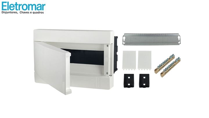 QUADRO DE DISTRIBUIÇÃO DE EMBUTIR ELETROMAR BRANCO P/12 DIN OU 18 NEMA DISJUNTOR COM BARRAMENTO