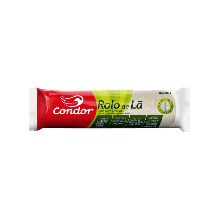 ROLO PARA PINTURA LÃ MISTA CONDOR 18MM 23CM SEM CABO