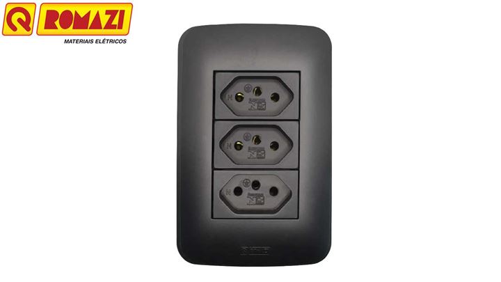 ROMAZI LINHA CANOA PRETA 3 TOMADAS 2P+T 10A