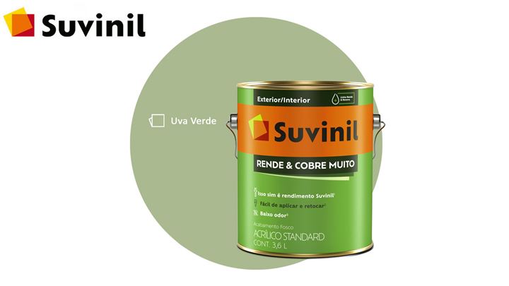 TINTA SUVINIL LÁTEX RENDE E COBRE MUITO FOSCO GALÃO 3,6L UVA VERDE