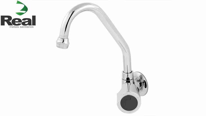 TORNEIRA REAL METAIS PARA COZINHA PAREDE BICA MÓVEL C40 1/4V TAMPA PRETA