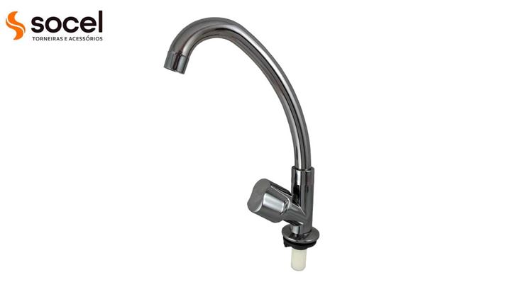 TORNEIRA SOCELPLAST COZINHA MESA BICA MÓVEL ALTA TULIPA SLIM CINZA 1/4V