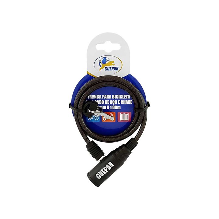 TRANCA PARA BICICLETA COM CHAVE 6MMX1,00MT -GUEPAR