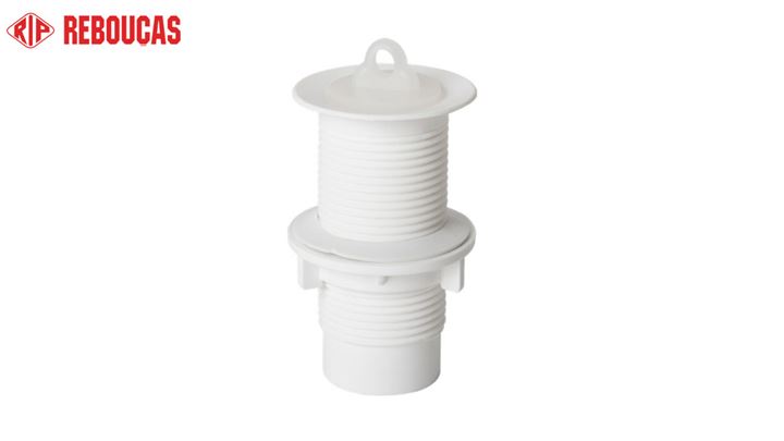 VÁLVULA PARA TANQUE PLÁSTICO BRANCA REBOUÇAS 1.1/4 PACOTE COM 12 PEÇAS